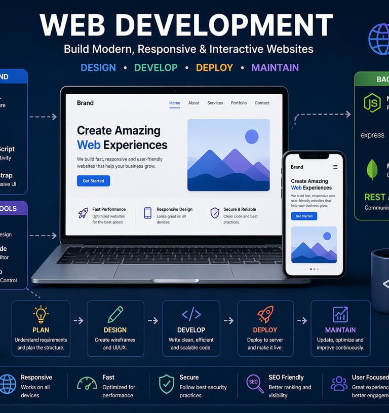 Master HTML, CSS, JavaScript, React and create responsive, modern websites from scratch.
