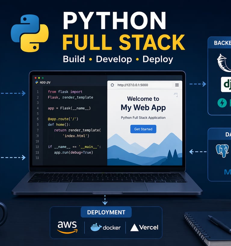 Learn frontend & backend development using Python. Build real-world web apps with databases and deployment skills.